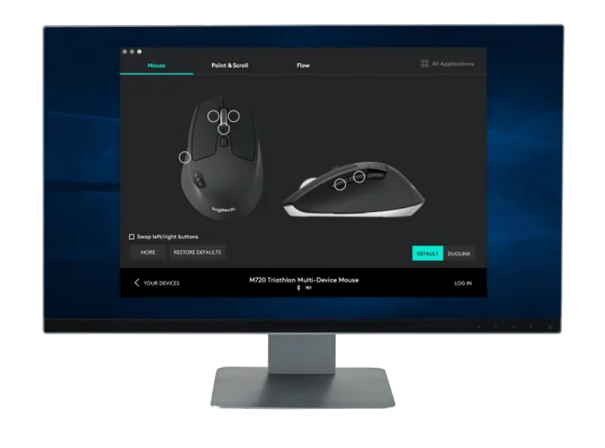 Use M720 to work seamlessly between computers, laptops, tablets. Pair your mouse to up to three different devices, and switch between them with the Easy-Switch™ button. Use Flow™ to fly through your tasks: seamlessly move text, images, and files across computers – and operating systems – with a simple copy and paste.