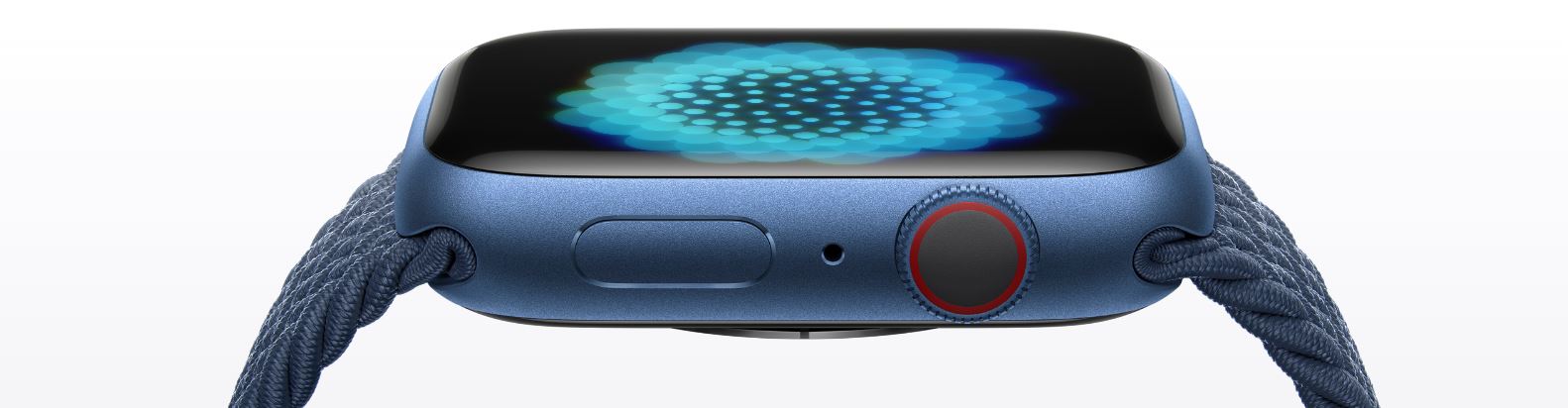 The challenge was to create a bigger display while barely expanding the dimensions of the watch itself. To do so, the display was completely re‑engineered reducing the borders by 40%, allowing for more screen area than both Series 6 and Series 3. Now that’s something to smile about.