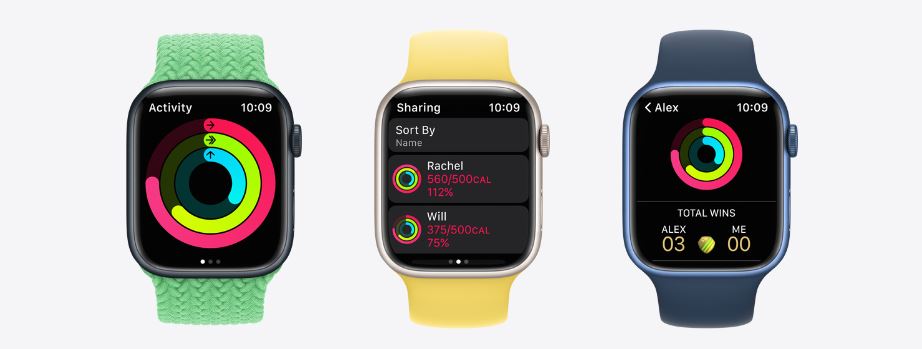Activity RingMove, Exercise, and Stand. Three rings that show all the ways you move throughout the day. | Activity SharingShare your Activity rings with friends and family to encourage each other.
