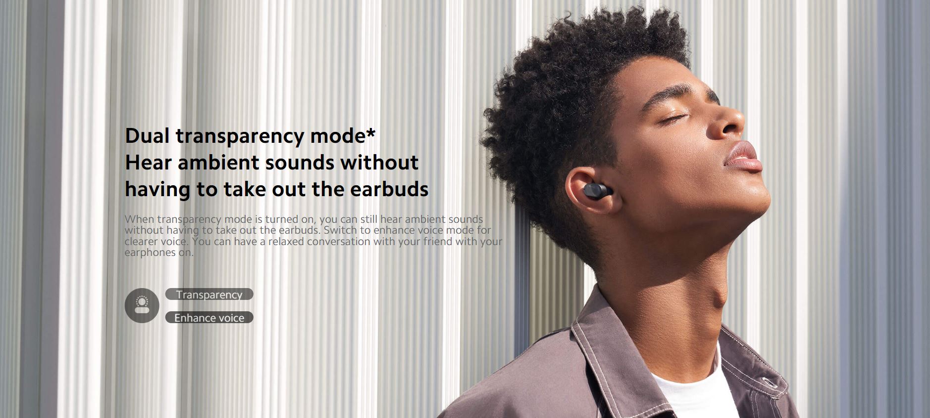Dual transparency mode : Allows you to converse freely while wearing the earbuds