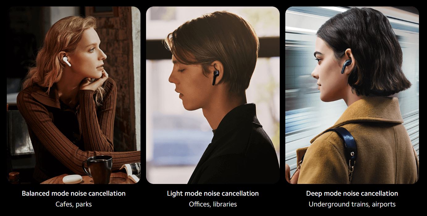 3 modes available for noise cancellationMeet your specific noise cancellation demandsSelect the proper mode in response to different degrees of ambient noisesto prevent excessive ear pressure and make your noise cancellation experience more comfortable.
