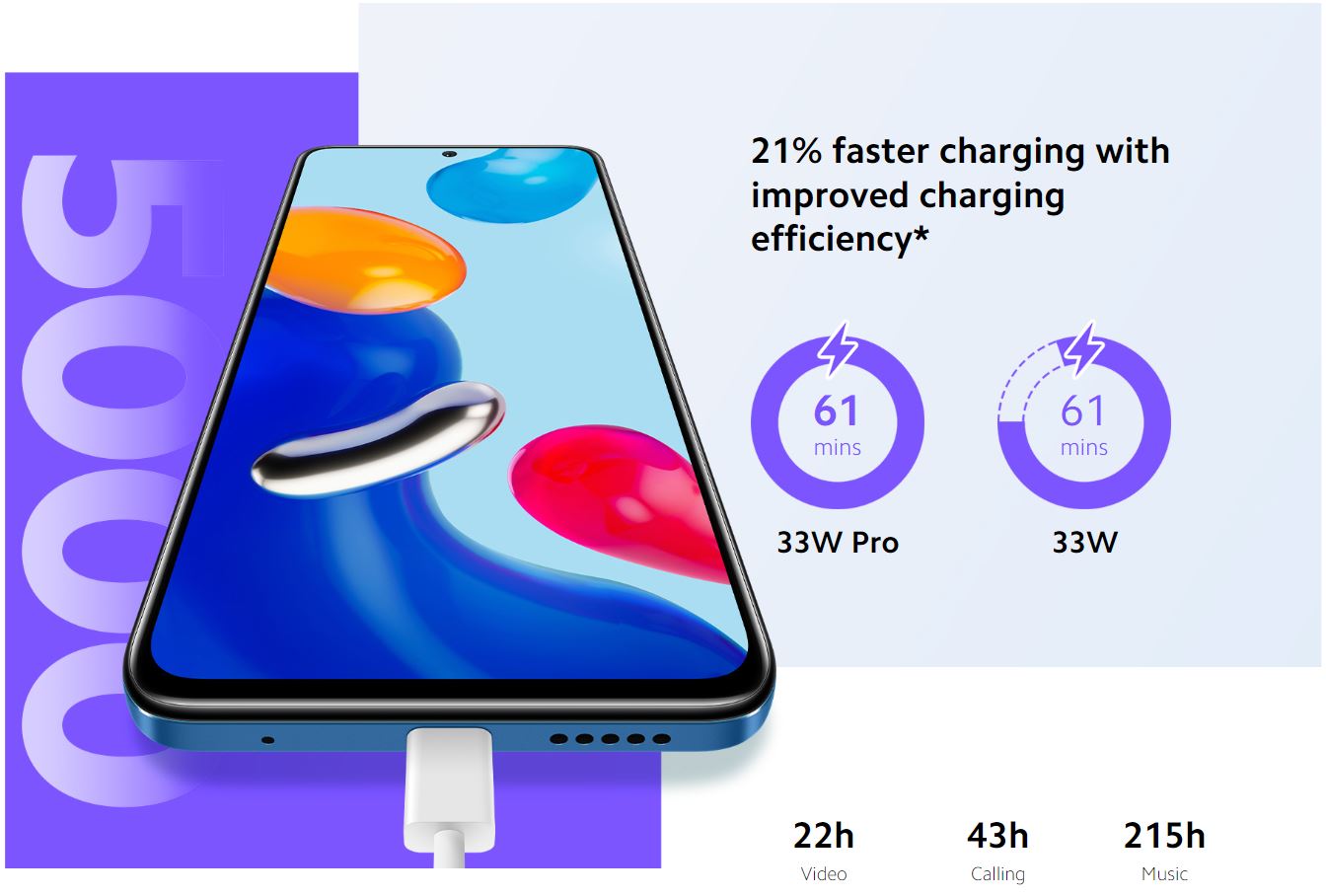 33W Pro fast charging with 5000mAh massive battery